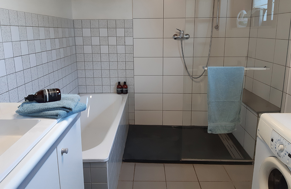 Lekker badderen in bad of een snelle douche? Dat kan in deze badkamer. Het toilet is apart van de badkamer.